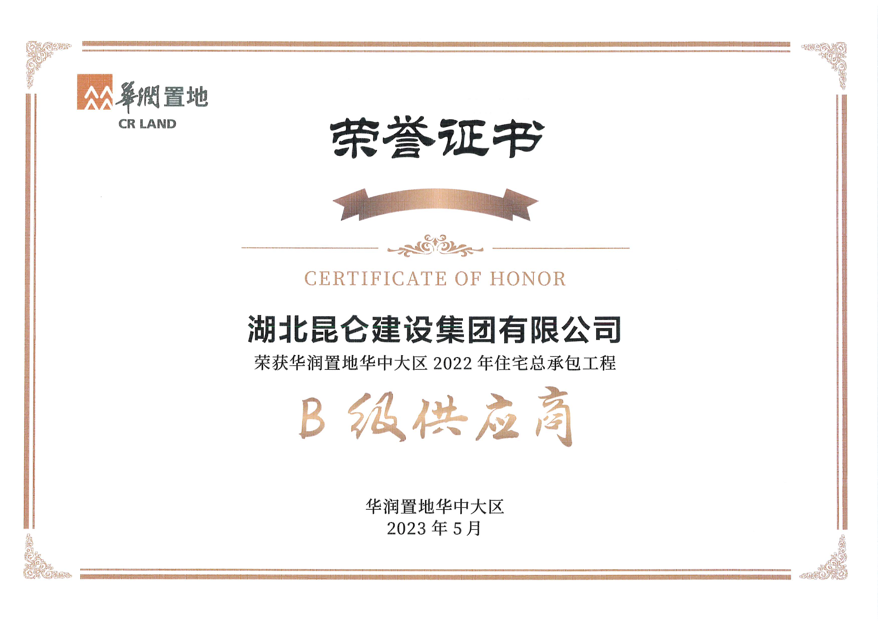2023年5月榮獲華潤(rùn)置地供應(yīng)商“攻艱克難獎(jiǎng)”